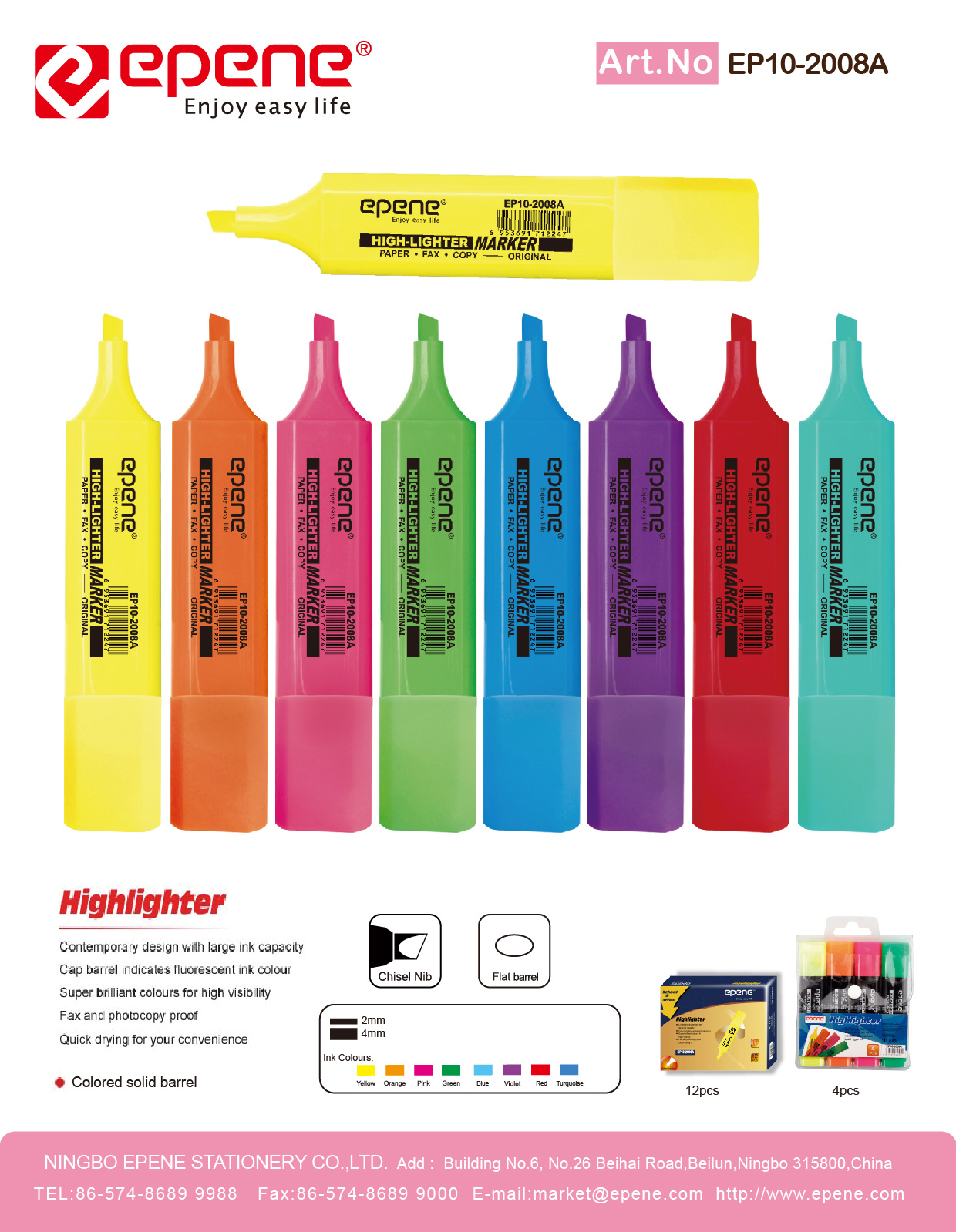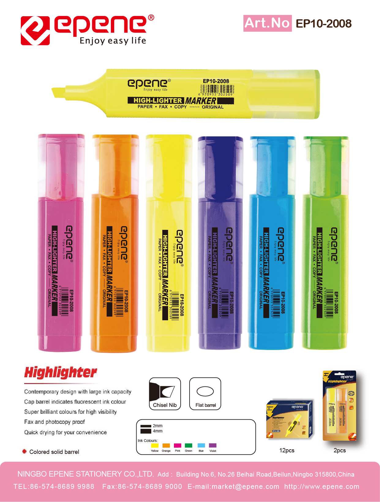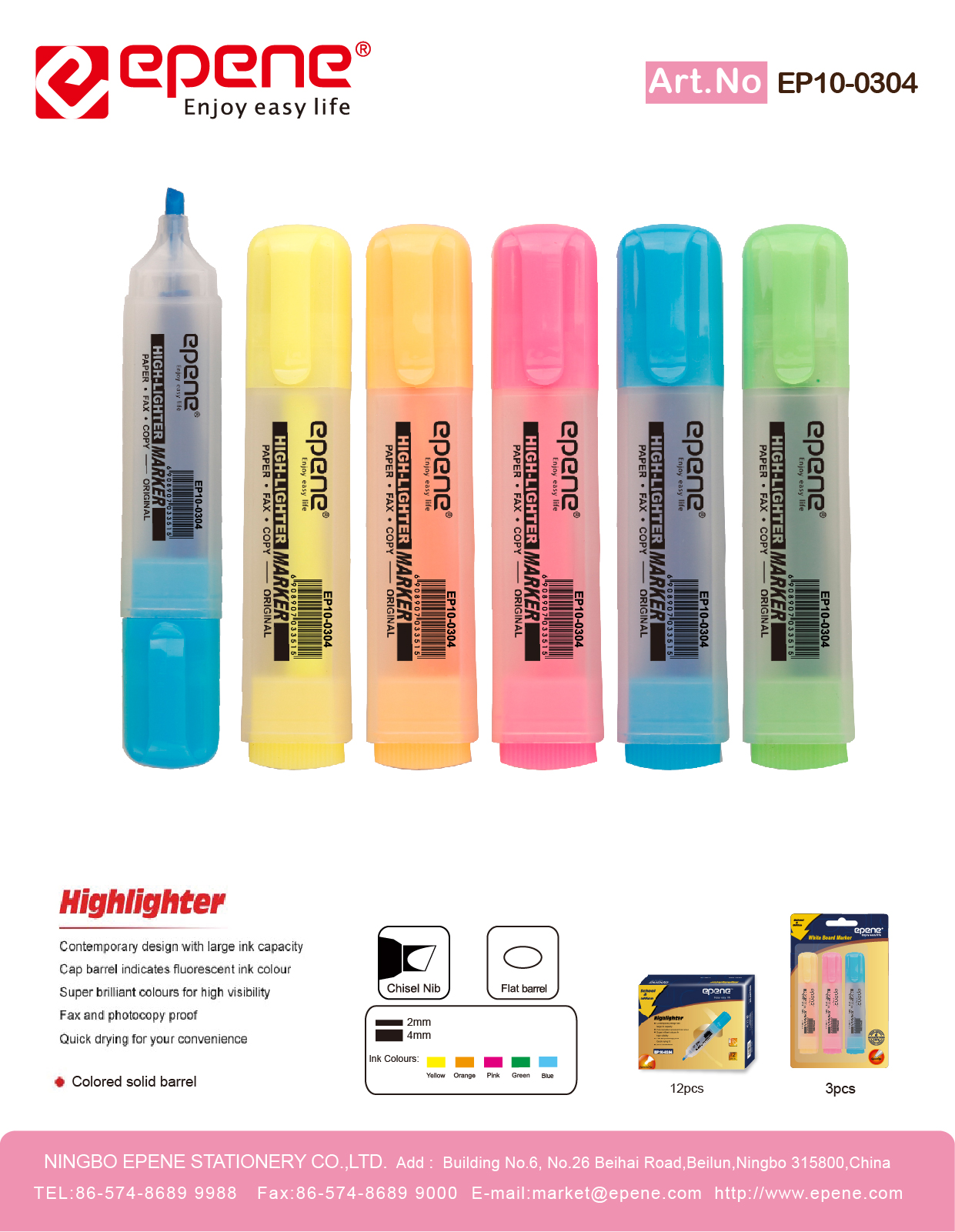 NINGBO EPENE STATIONERY CO., LTD. Add: No. 25 Laoshan Road