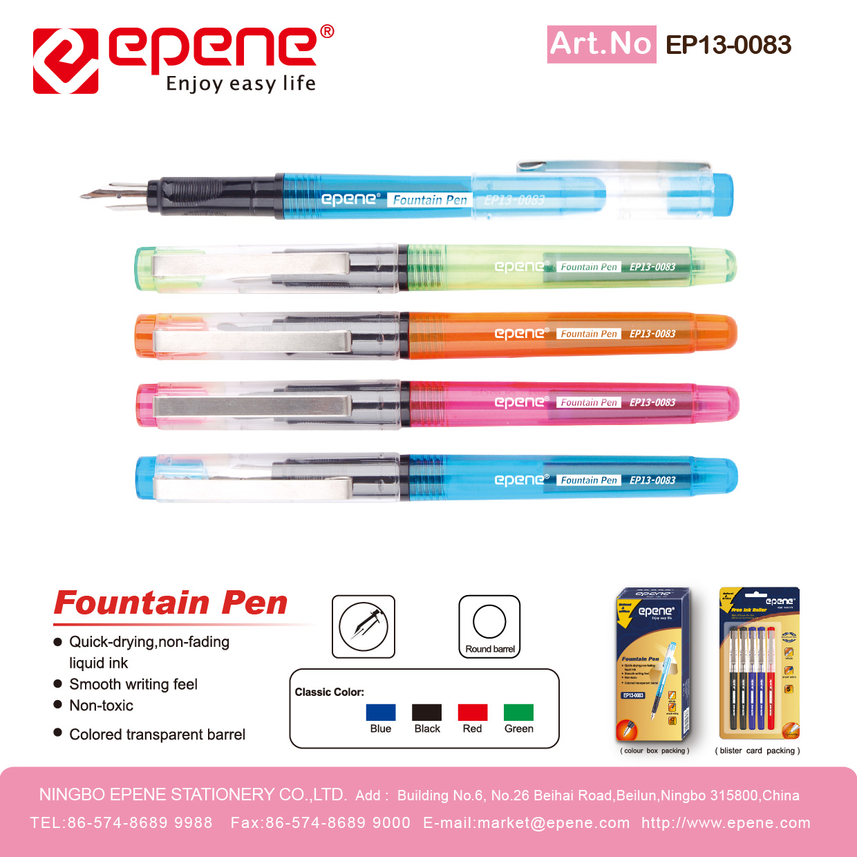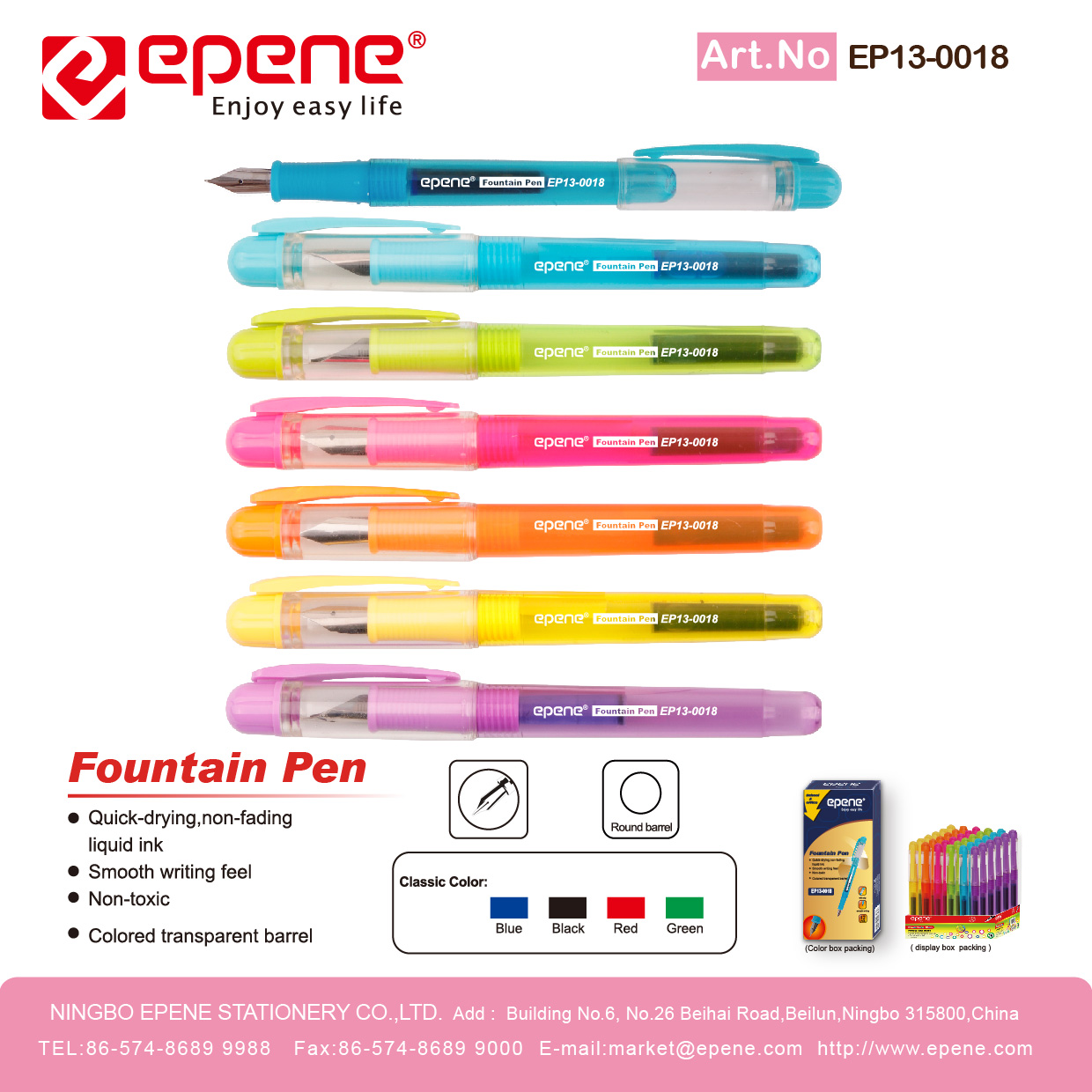 NINGBO EPENE STATIONERY CO., LTD. Add: No. 25 Laoshan Road