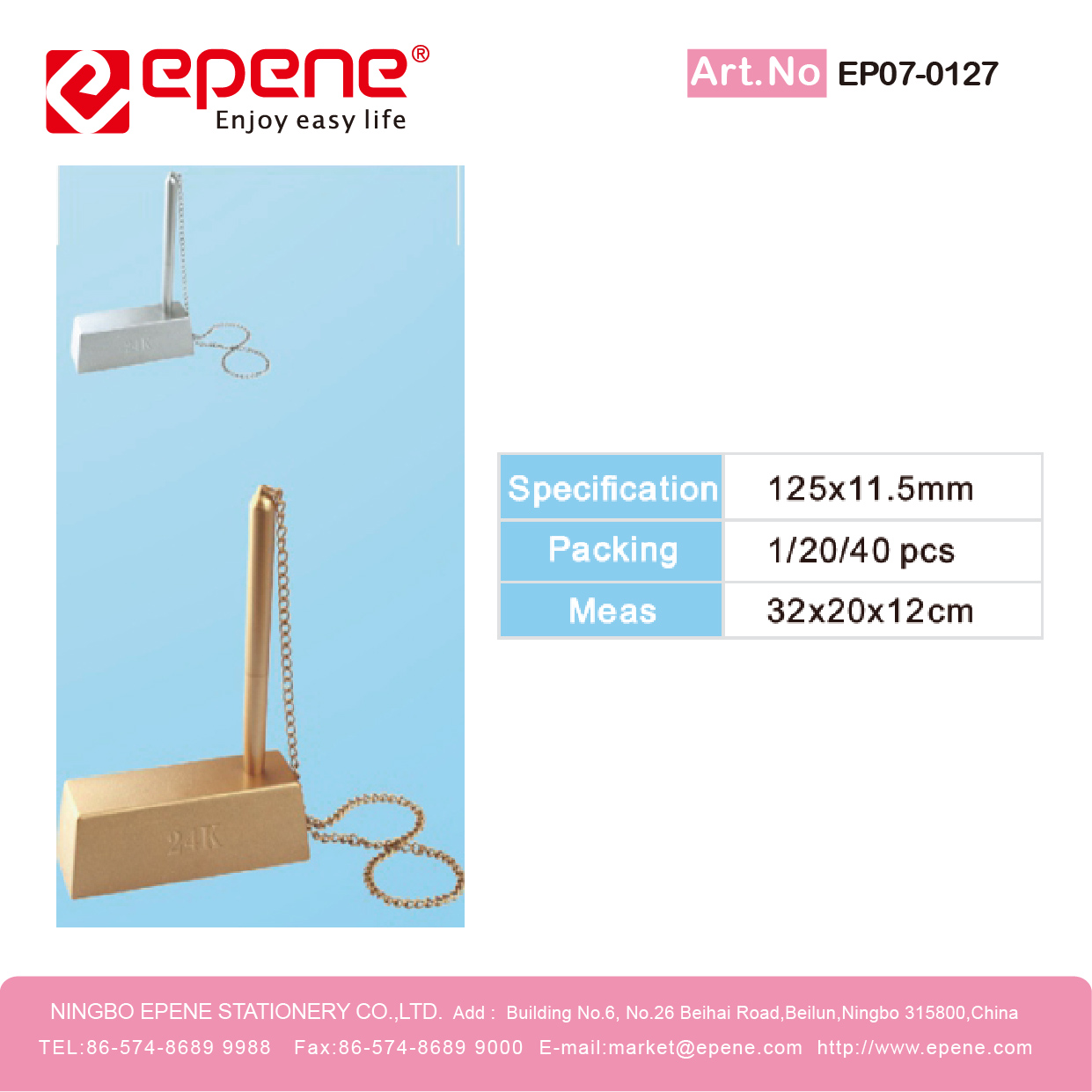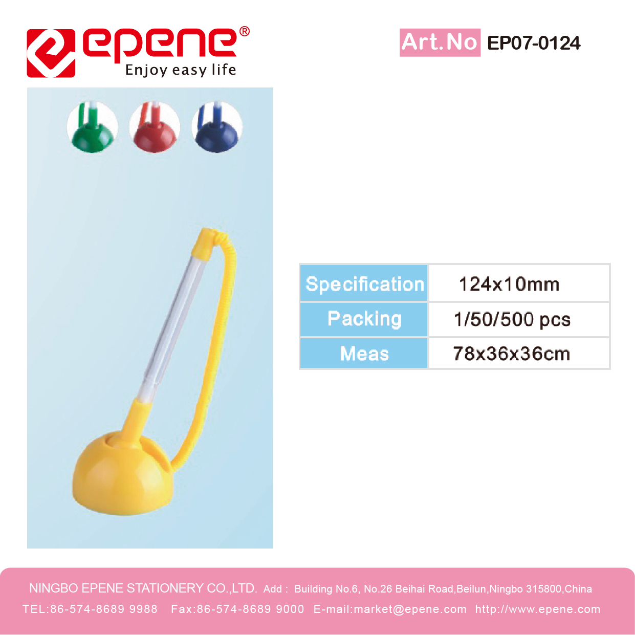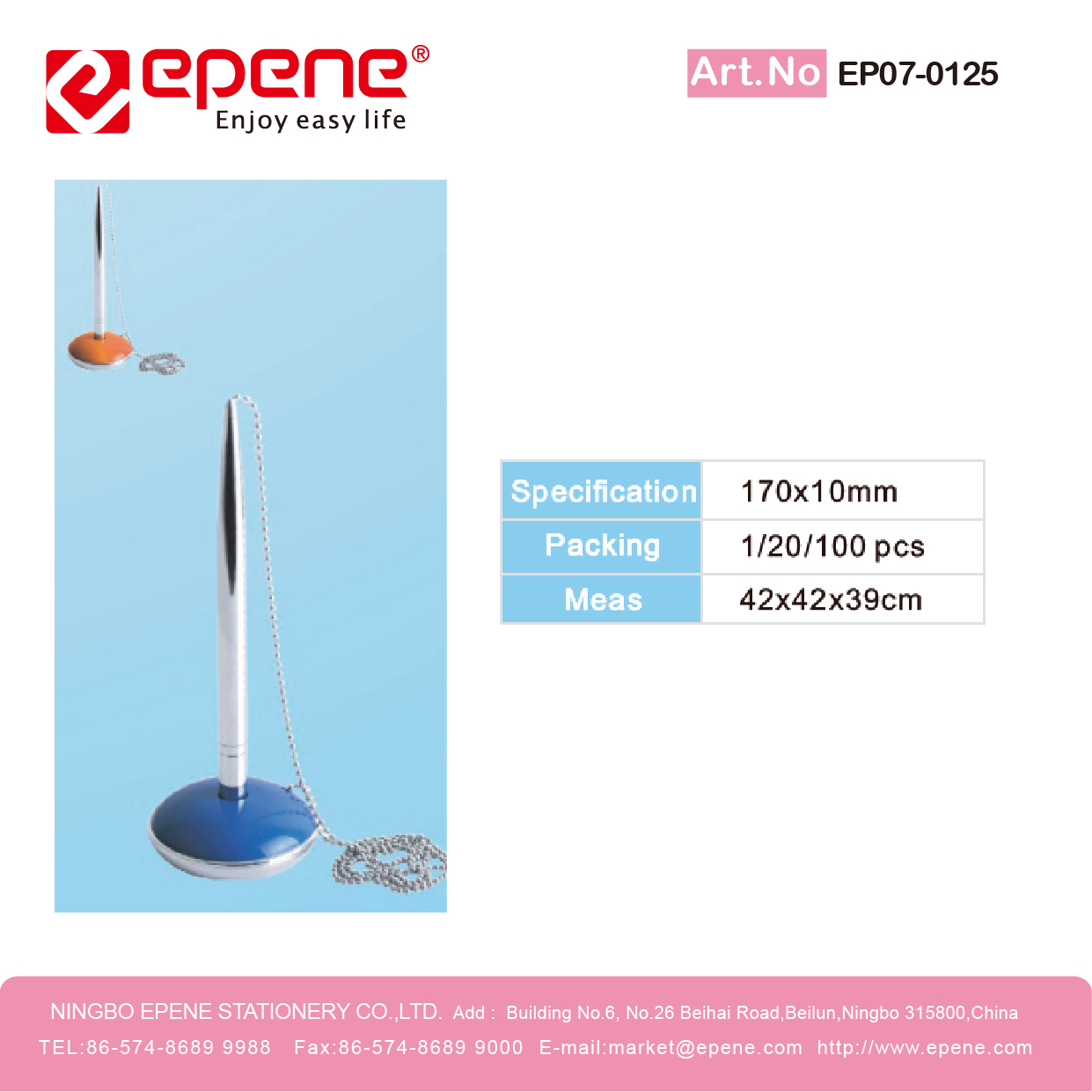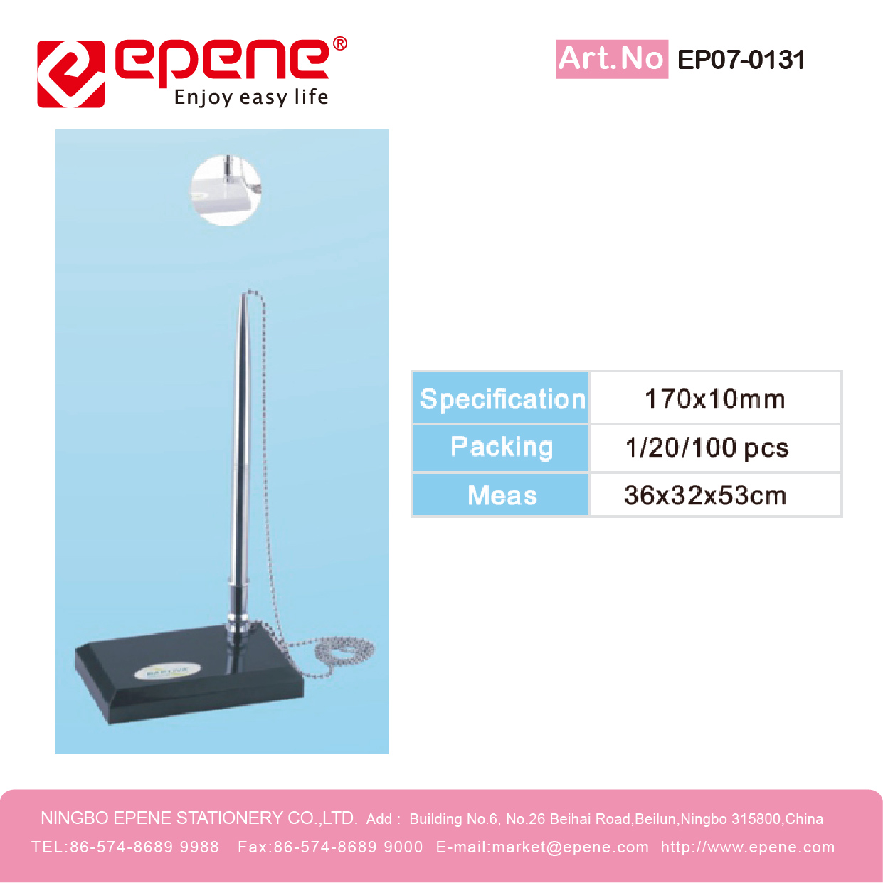 NINGBO EPENE STATIONERY CO., LTD. Add: No. 25 Laoshan Road