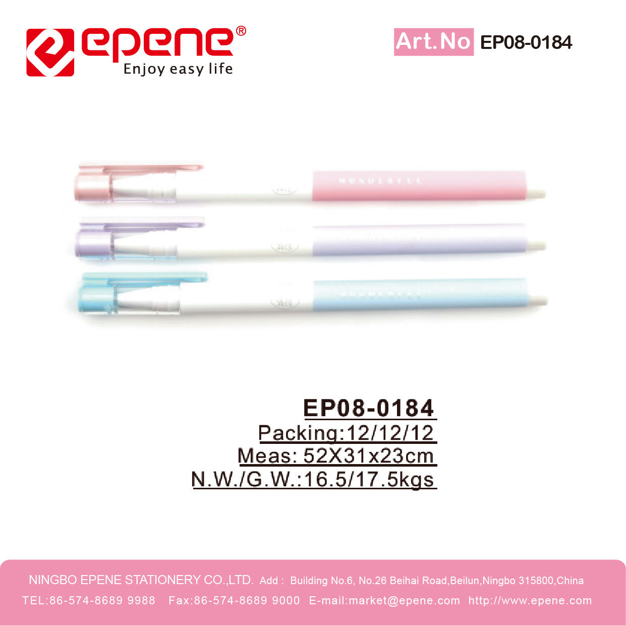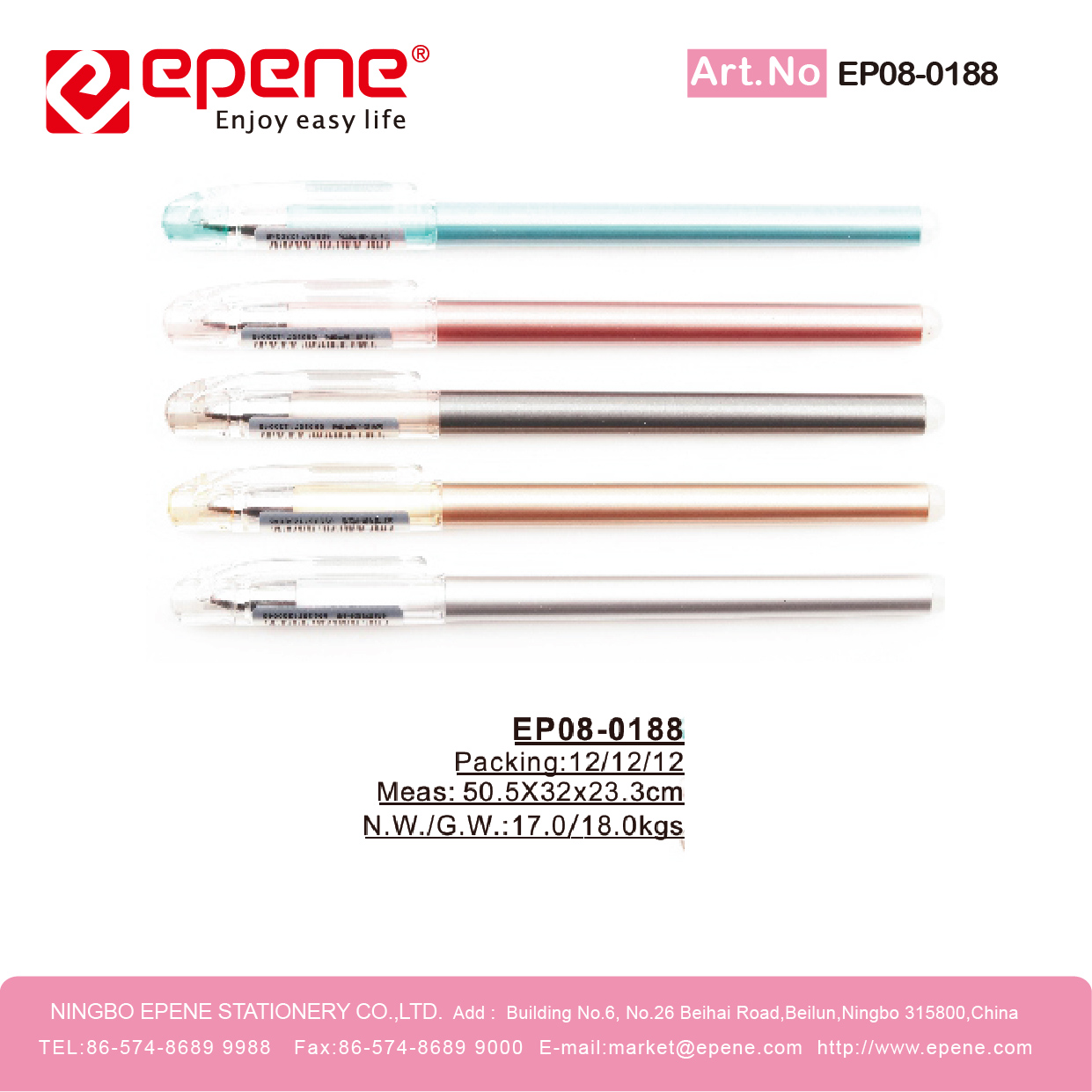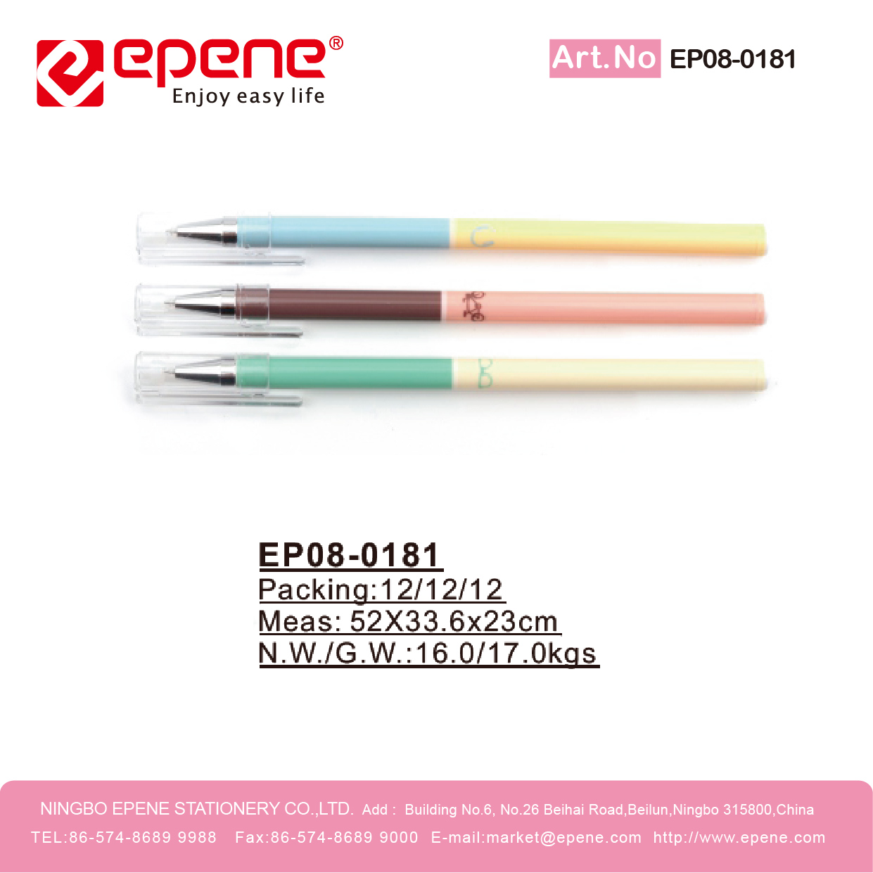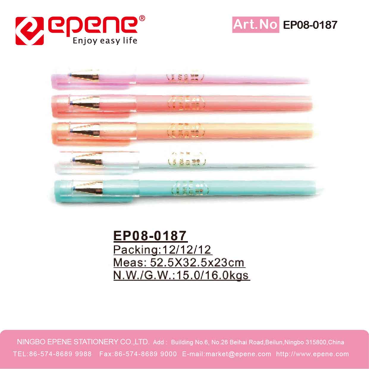 NINGBO EPENE STATIONERY CO., LTD. Add: No. 25 Laoshan Road