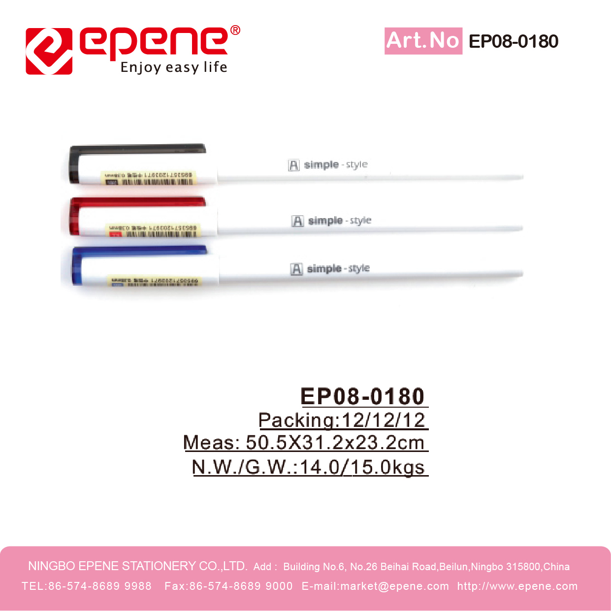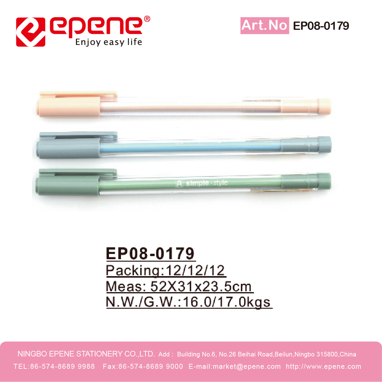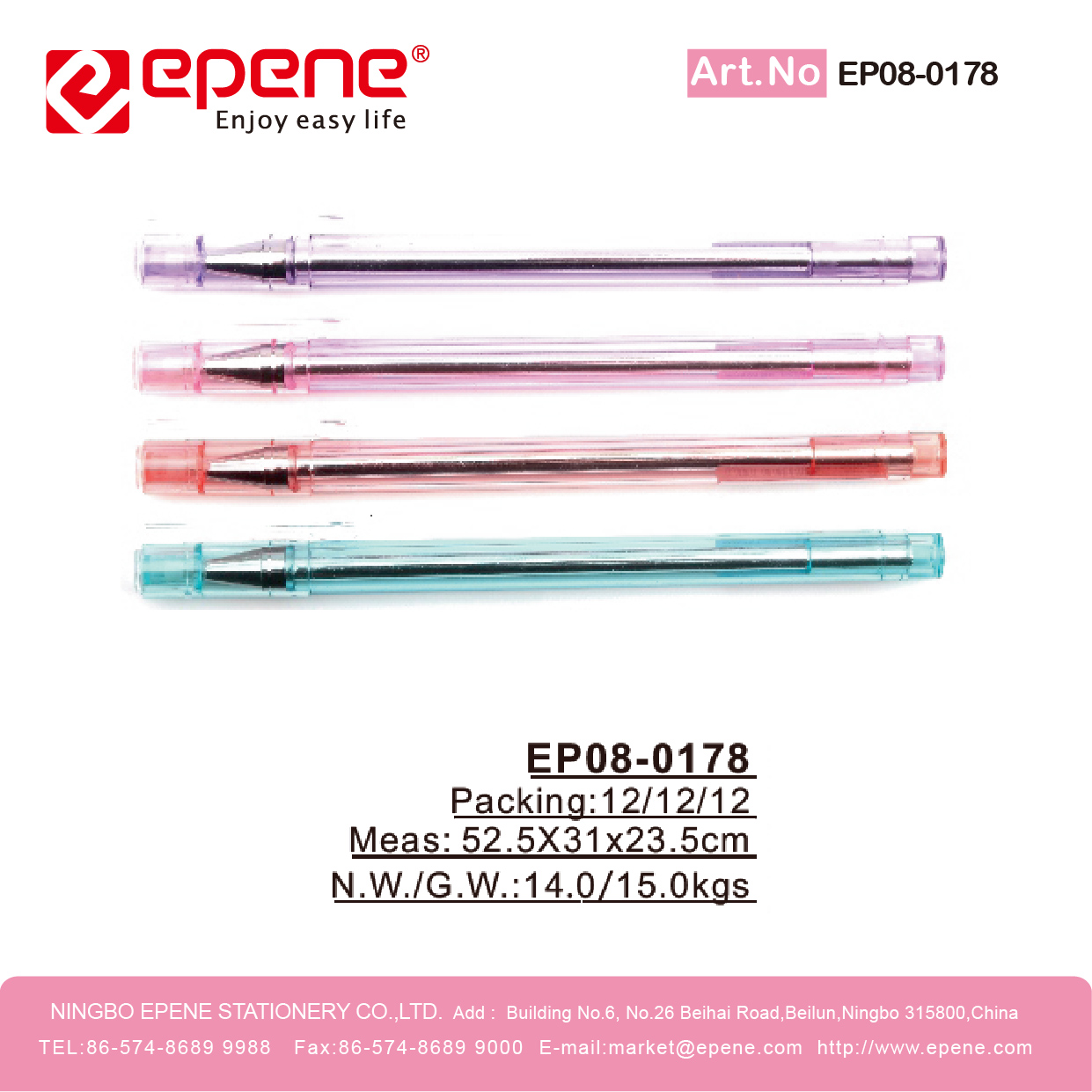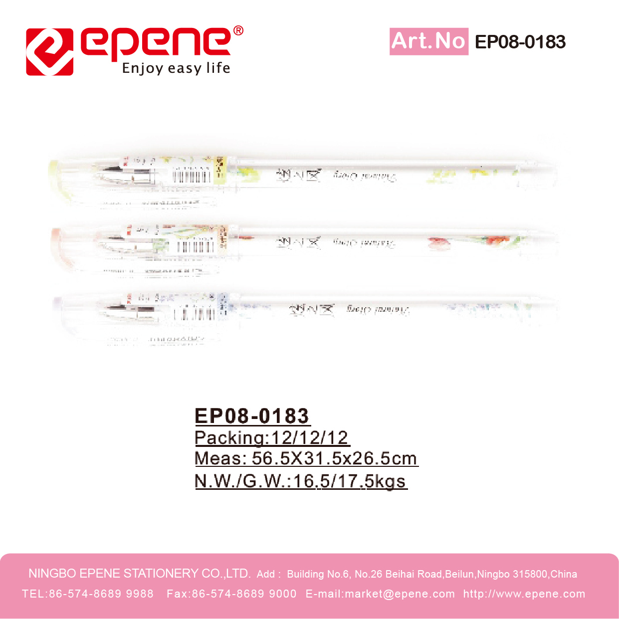 NINGBO EPENE STATIONERY CO., LTD. Add: No. 25 Laoshan Road