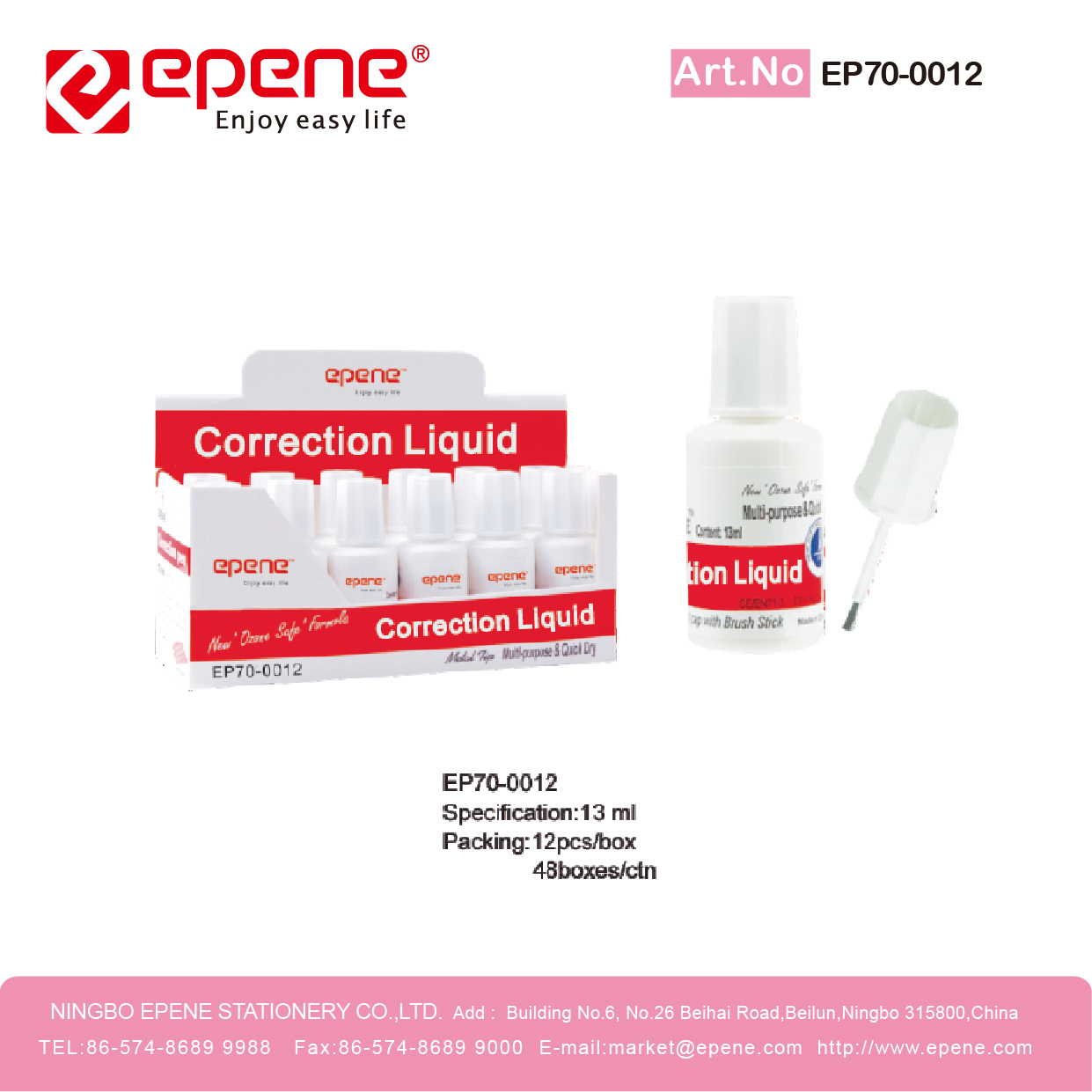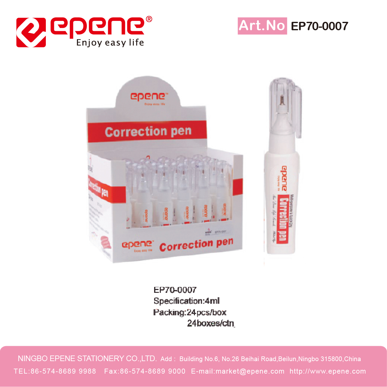 NINGBO EPENE STATIONERY CO., LTD. Add: No. 25 Laoshan Road